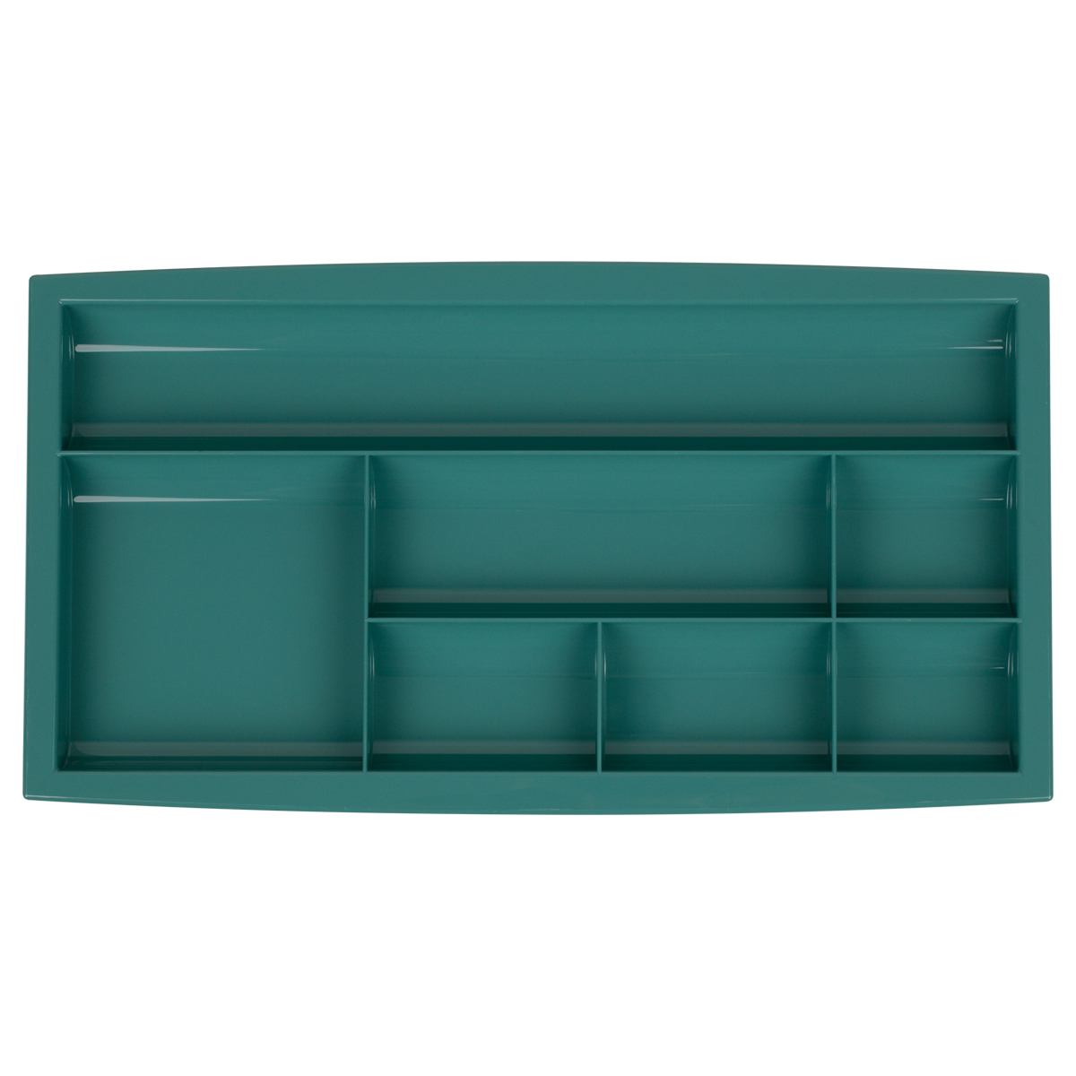 Настольная подставка СТАММ предназначена для хранения канцелярских принадлежностей и бытовых мелочей. Изделие размером 18,2*35,1*2 см подходит для размещения в ящике рабочего стола. Имеет 7 отделений разных размеров. Подставка изготовлена из качественного полистирола. Цвет изделия: зеленый.