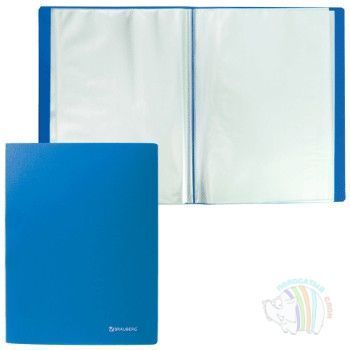 Папка 100 файлов ф.A4, пластик 0.80мм, BRAUBERG бюджет, синяя, 222640