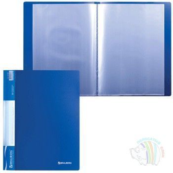 Папка 30 файлов А4, BRAUBERG стандарт, синяя, 0,6мм