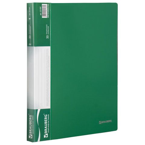 Папка 30 файлов А4, BRAUBERG стандарт, зеленая, 0,6 мм, 221597
