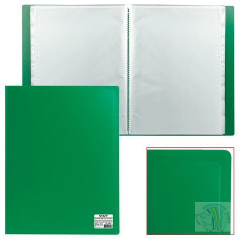 Папка 30 файлов А4, STAFF эконом, зеленая, 0,5мм