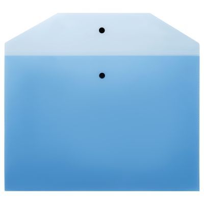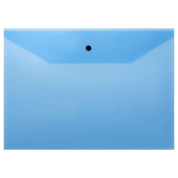 Папка-конверт на кнопке «СТАММ» формата А4 надёжно защищает документы от влаги и пыли. Горизонтальная папка вмещает до 100 листов. Цвет папки – прозрачный синий. Папка изготовлена из качественного полипропилена плотностью 120 мкм с глянцевой текстурой. Размер папки составляет 330*235 мм. Изделие плотно закрывается клапаном с кнопкой.