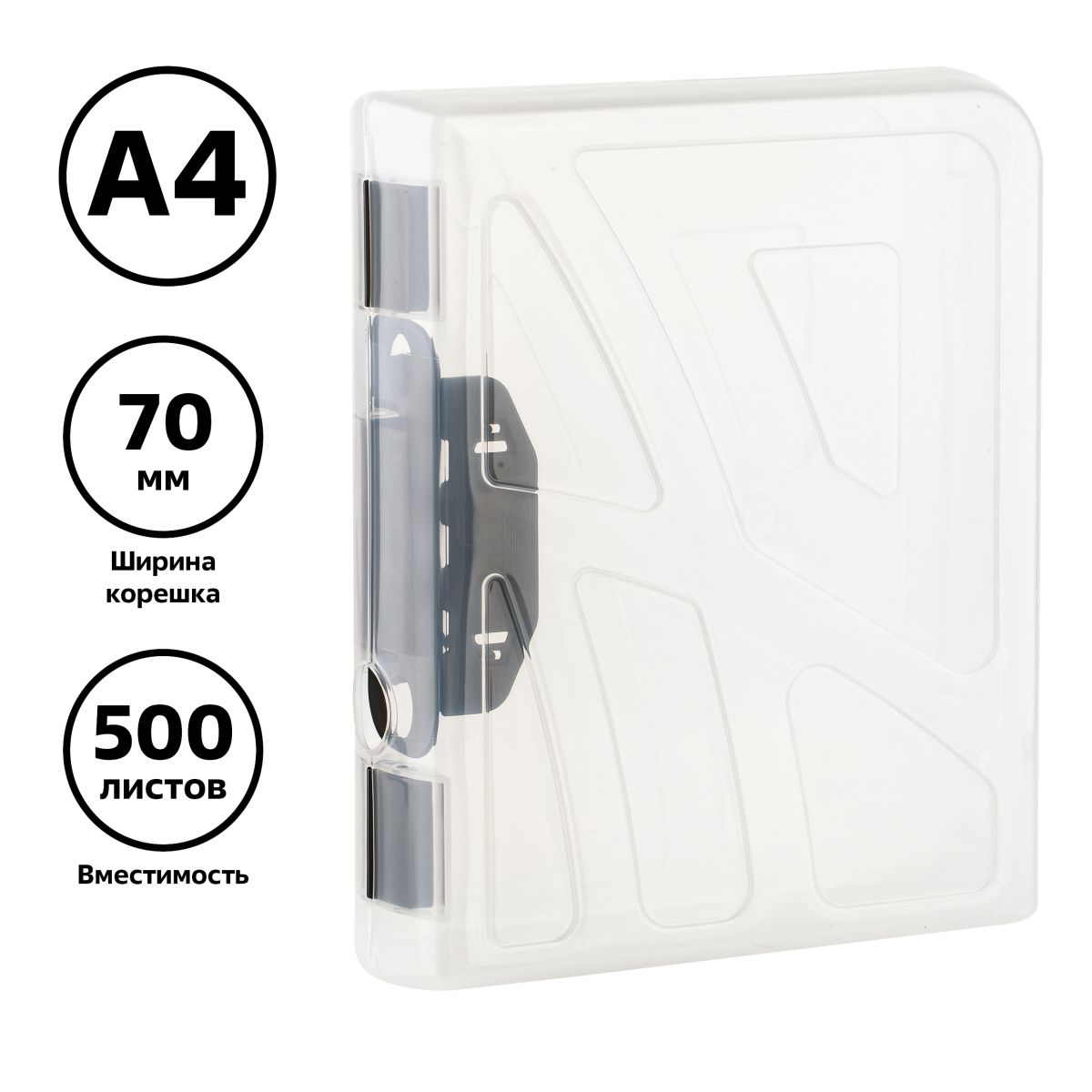 Папка-регистратор 70 мм СТАММ, пластик., на защелках, прозрачная