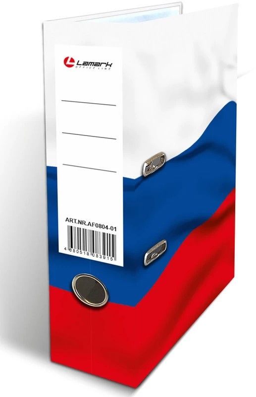 Папка-регистратор Lamark "Триколор" изготовлена из жесткого картона, заламинированного снаружи мелованной бумагой с глянцевой ламинацией. Выклейка внутри с алфавитно-цифровым полем слева для классификации документов. Корешок 75 мм. Арочный механизм. Прорези на внешней крышке удерживают папку в закрытом положении даже при полной загрузке, порядка 400 листов.