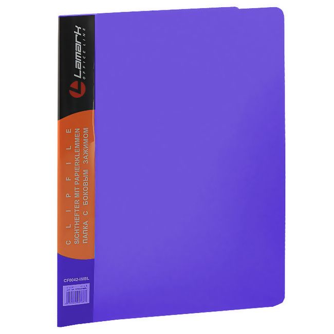 Папка с боковым металлическим зажимом Lamark изготовлена из пластика толщиной 0,60 мм, высококачественный полипропилен РР, цвет синий полупрозрачный неон. На торце карман с индексной вставкой. Корешок 18 мм. Предназначена для подборки и хранения документов А4 формата.