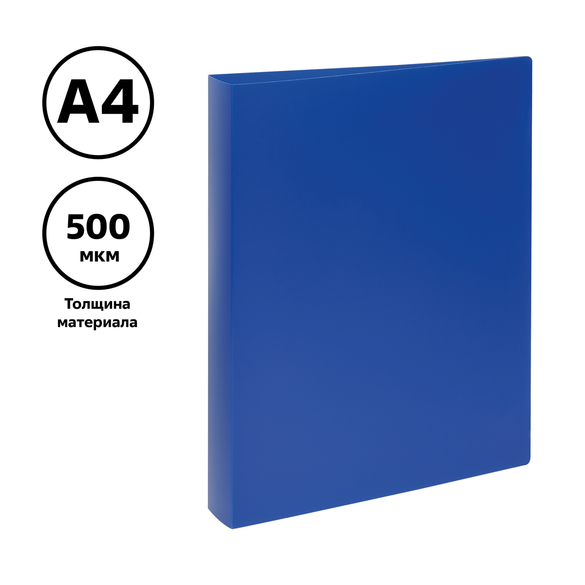 Папка с 2 кольцами 40мм СТАММ А4, 500мкм, пластик, синяя