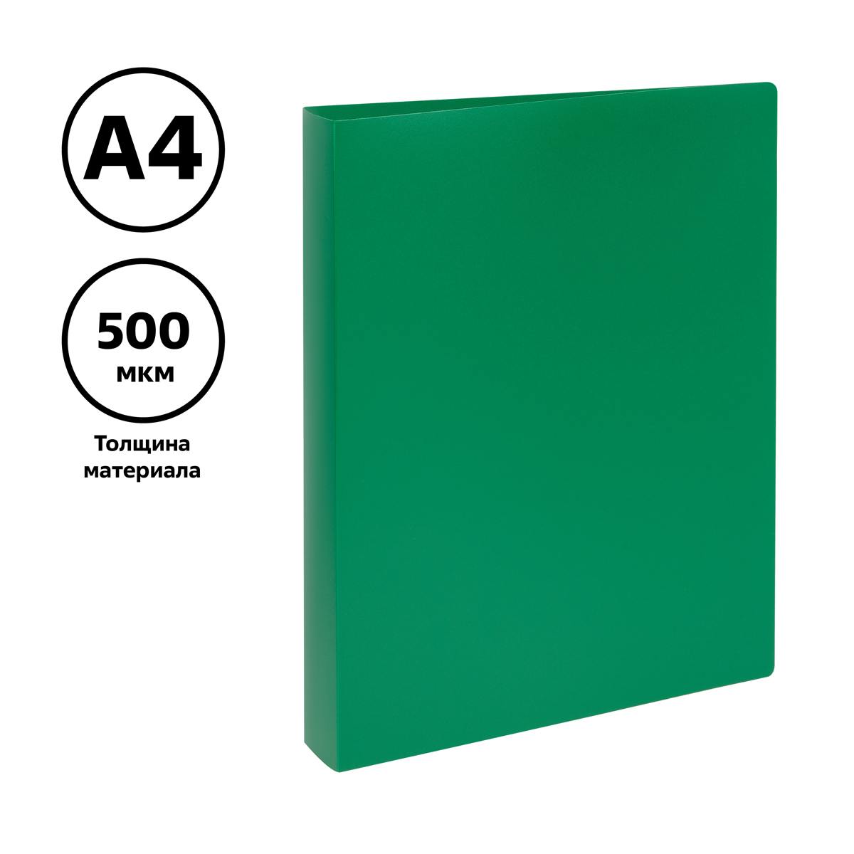 Папка с 2 кольцами 40мм СТАММ А4, 500мкм, пластик, зеленая