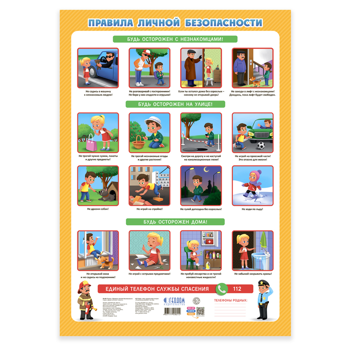 Дидактический плакат “Правила личной безопасности” поможет оформить информационный стенд в школе или уголок в детском саду и станет полезным украшением детской комнаты.