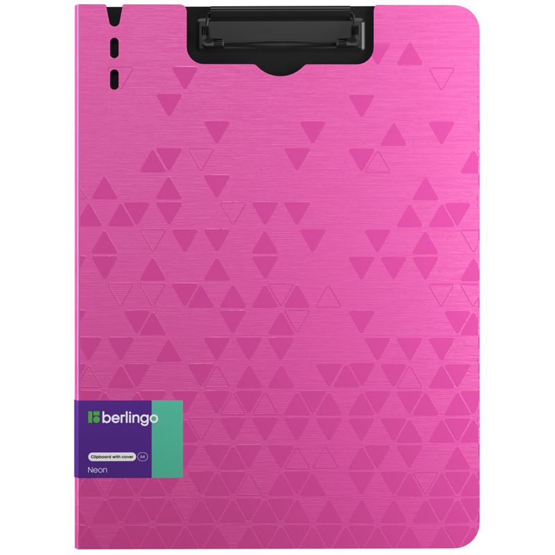 Папка–планшет с зажимом Berlingo серии Neon размером 320*225 мм изготовлена из плотного пластика (полифом) толщиной 1,8 мм. Вместимость папки – 100 листов, ширина корешка – 10 мм. Яркий розовый неоновый цвет внешней стороны в сочетании с уникальной фактурой поверхности, черный цвет внутренней поверхности с прижимом. Черный металлический зажим для фиксации документов. Возможность раскрытия папки на 360 градусов. Вырубки на крышке позволяют легко закрепить ручку на папке. Позволяет делать записи на весу. Индивидуальная упаковка в пакет.