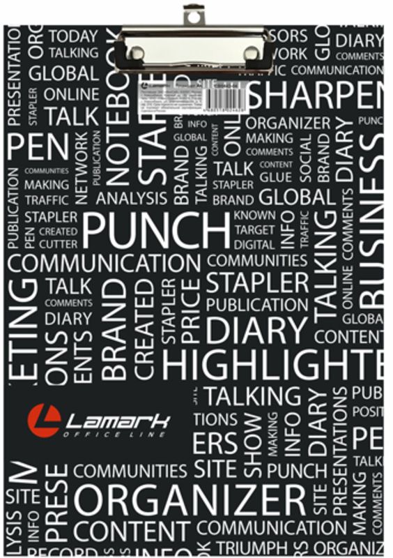 Планшет Lamark c верхним металлическим зажимом выполнен из плотного картона толщиной 2 мм, оклеенного бумагой с Буквенным принтом с двух сторон. Матовая ламинация. Для документов формата А4. Механизм: еврофурнитура, зажим с европодвесом, с пластмассовыми уголками. Широкое применение: для выступлений, докладов; для работы на конференциях, корпоративных мероприятиях, выставках; склад, логистика, торговые представители.