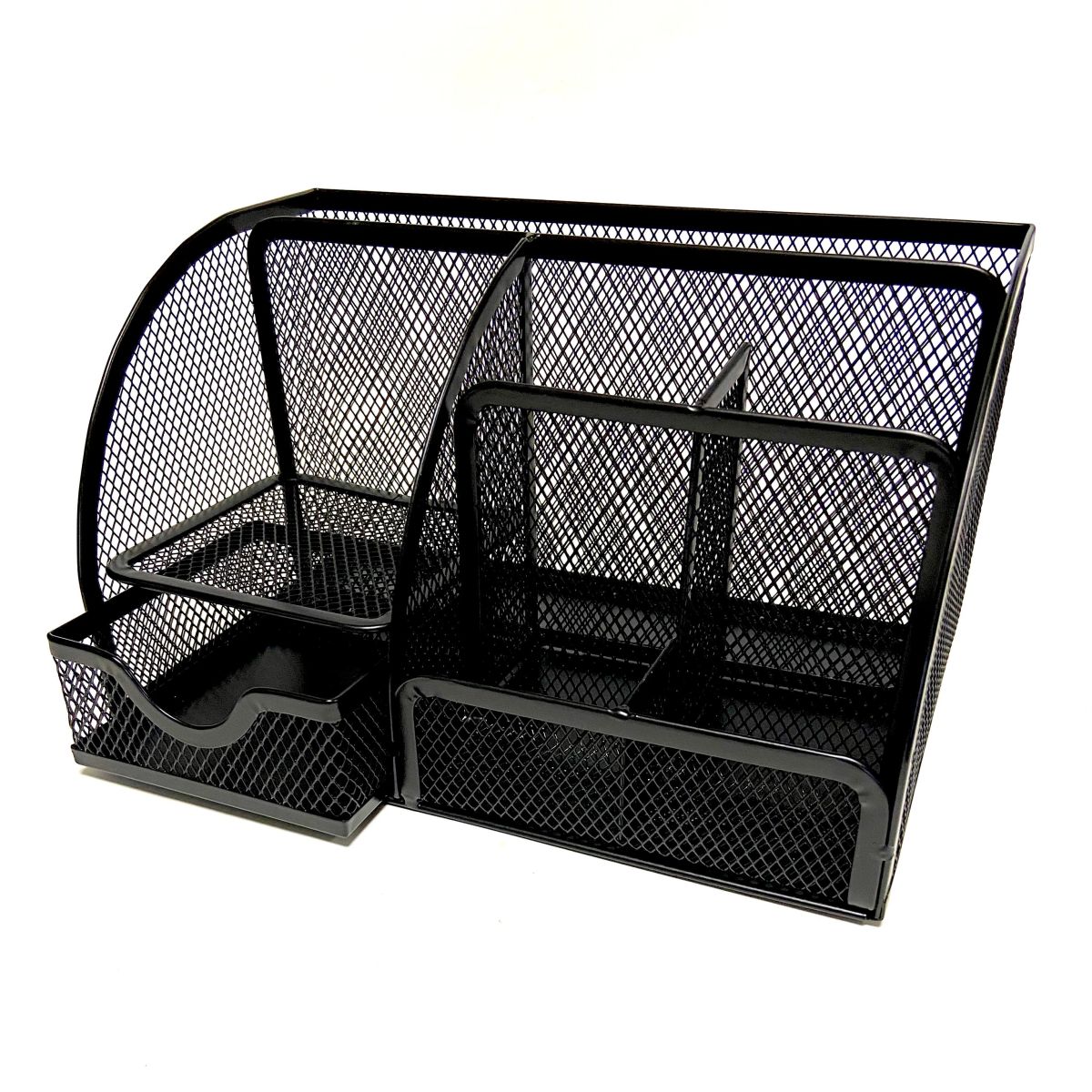 Подставка-органайзер 5 секций + выдвижной отдел, металлическая сетка, черный