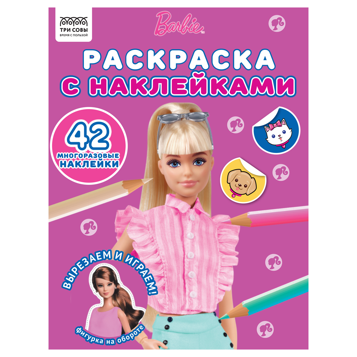 Раскраска А4 ТРИ СОВЫ «Барби», 8стр., с наклейками