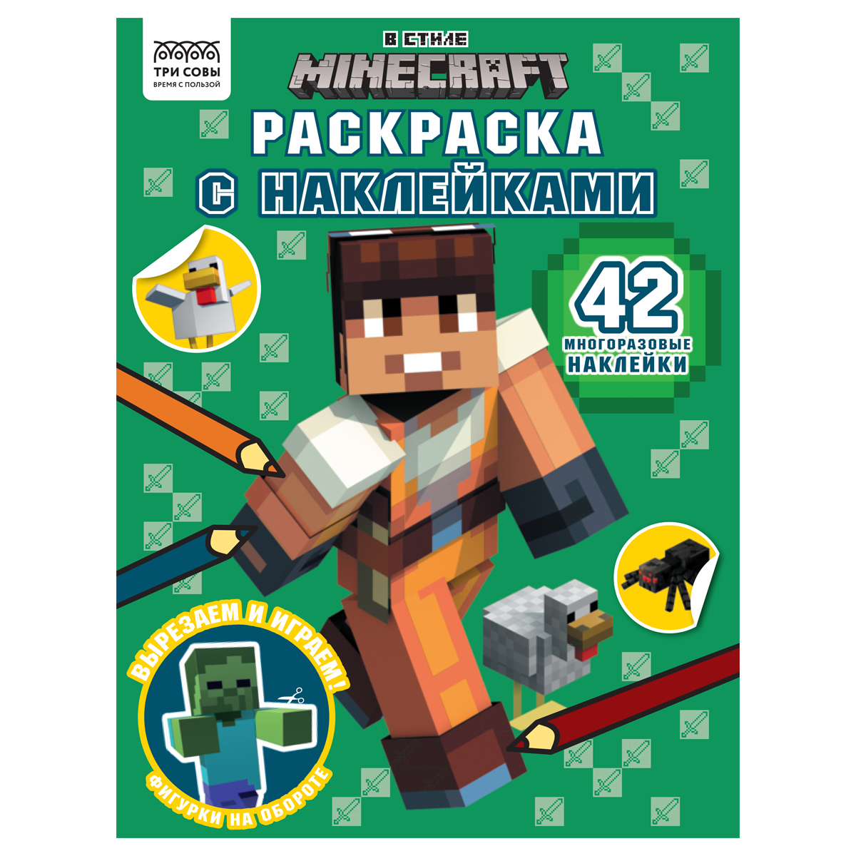 Раскраска А4 ТРИ СОВЫ «В стиле Minecraft», 8стр., с наклейками
