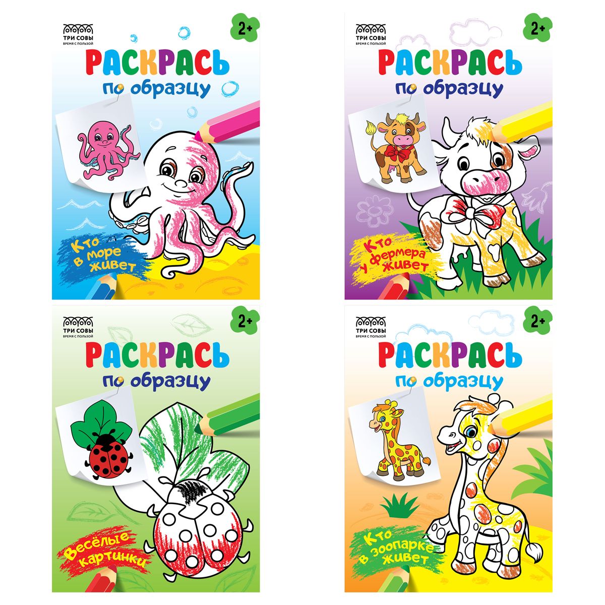Раскраски серии «Раскрась по образцу» бренда «ТРИ СОВЫ» – это изделия, на одном развороте которых размещено яркое и цветное изображение, а на другом – такое же изображение, но с чёрно-белым контуром. Ребенок должен эту картинку раскрасить по образцу первой. Внутренний блок – 8 страниц плотной бумаги. Данный вид раскраски помогает не только тренировать навык раскрашивания и развивать мелкую моторику, но и способствует развитию внимания. Впрочем, если ребенок не хочет раскрашивать по образцу, то дайте ему возможность проявить фантазию и раскрасить так, как ему хочется. Благодаря формату А5 данную раскраску удобно брать с собою в дорогу. В запайке 4 штуки на разные темы, которые помогают малышу познакомиться с окружающим миром: «Весёлые картинки», «Кто в зоопарке живёт», «Кто в море живёт», «Кто у фермера живёт».