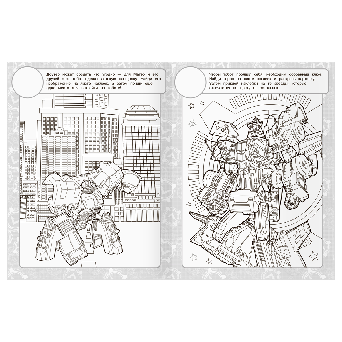 Бренд «ТРИ СОВЫ» представляет раскраску «Тоботы» с любимыми героями размером 218*285 мм. Внутренний блок 8 страниц плотной бумаги, которая подходит для раскрашивания карандашами и фломастерами. Яркая обложка с изображением известной героиней приглашает юных любителей рисования в чёрно-белый сказочный мир, который необходимо сделать цветным и динамичным, а для этого требуется проявить фантазию и креатив! В данной серии необходимо раскрасить картинку, подобрать к ней наклейку-портрет, найти спрятанный на картинке секрет и приклеить наклейку.