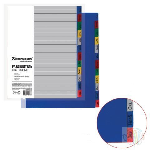 Разделитель А4 Январь-Декабрь BRAUBERG, пластиковый, оглавление, цветной