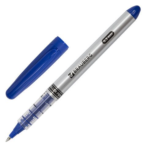 Ручка-роллер BRAUBERG Control, корпус серебристый, толщ.письма 0,5мм, синяя