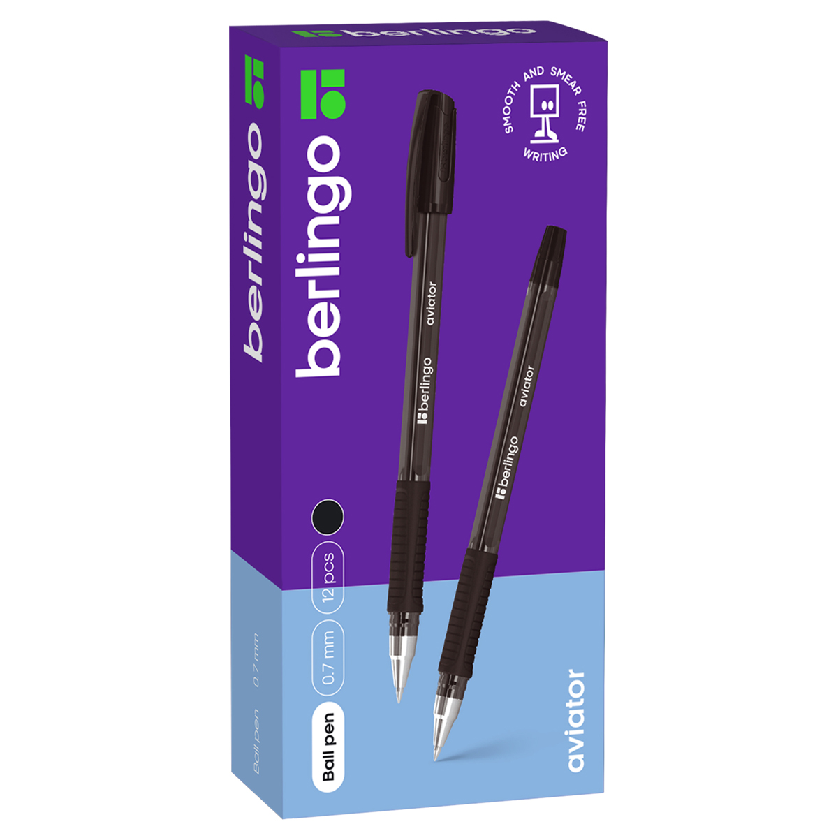 Шариковая ручка Berlingo Aviator — воплощение функционала и качества, один из флагманов ассортимента бренда. Модель выполнена в массивном четырёхгранном корпусе в цвет чернил. Зона захвата оснащена мягким резиновым грипом для предотвращения скольжения во время использования. Крупная текстура грипа и утолщение-упор для пальцев в нижней его части обеспечивают максимальный комфорт. Стержень ручки заправлен чёрными немажущими чернилами, обеспечивающими аккуратную линию и чистоту письма. Цельнометаллический наконечник способен выдержать самые серьезные нагрузки. Современный технологичный дизайн, оригинальный колпачок с логотипом бренда придают ручке солидный и запоминающийся внешний вид. Ручка поставляется с пишущим узлом 0,7 мм (линия письма 0,5 мм), что делает её универсальной и подходящей для любого стиля письма. Уникальная запатентованная технология Smart Ink обеспечивает лёгкое и приятное письмо за счёт использования чернил пониженной вязкости, специальной конструкции пишущего узла, инновационных материалов шарика и пишущего узла. Компоненты, используемые для изготовления шарика пишущего узла (карбид вольфрама), обеспечивают долговечность и стабильность качества письма.