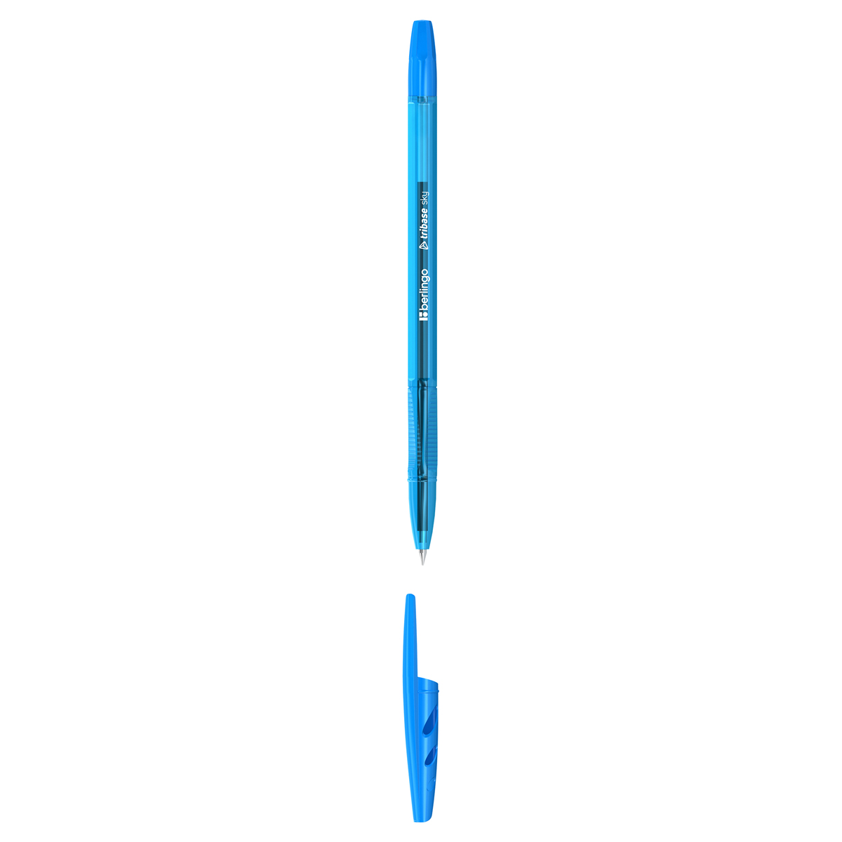 Шариковая ручка Berlingo Tribase Sky со светло-синими чернилами и вентилируемым колпачком, который обеспечивает безопасность при использовании детьми.