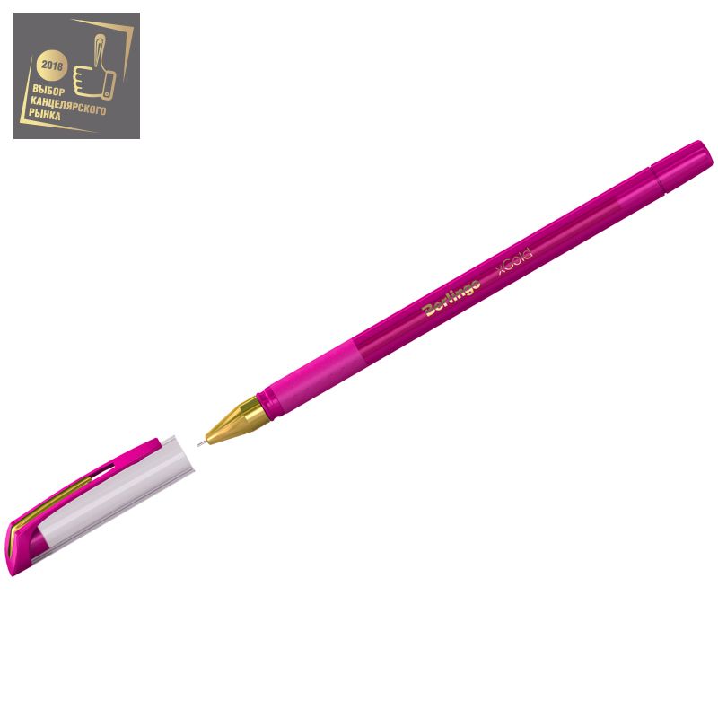 Ручка шариковая Berlingo «xGold» розовая, 0,7мм, игольчатый стержень, грип