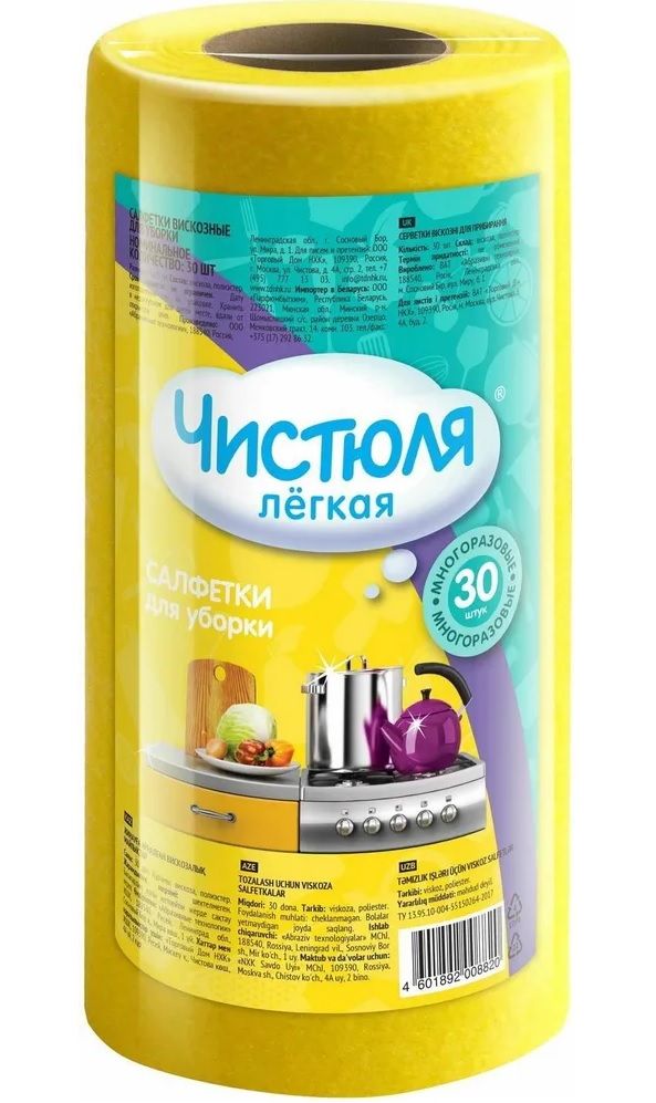 Салфетка вискозная ЧИСТЮЛЯ, д/уборки, в рулоне 30 шт