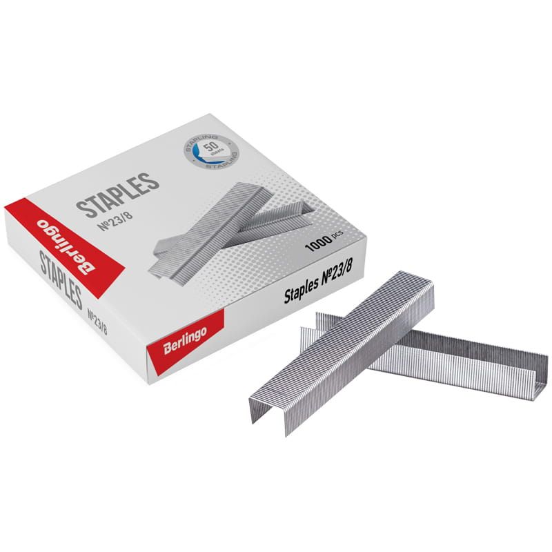 Скобы для степлера №23/8 Berlingo, оцинкованные, 1000шт.