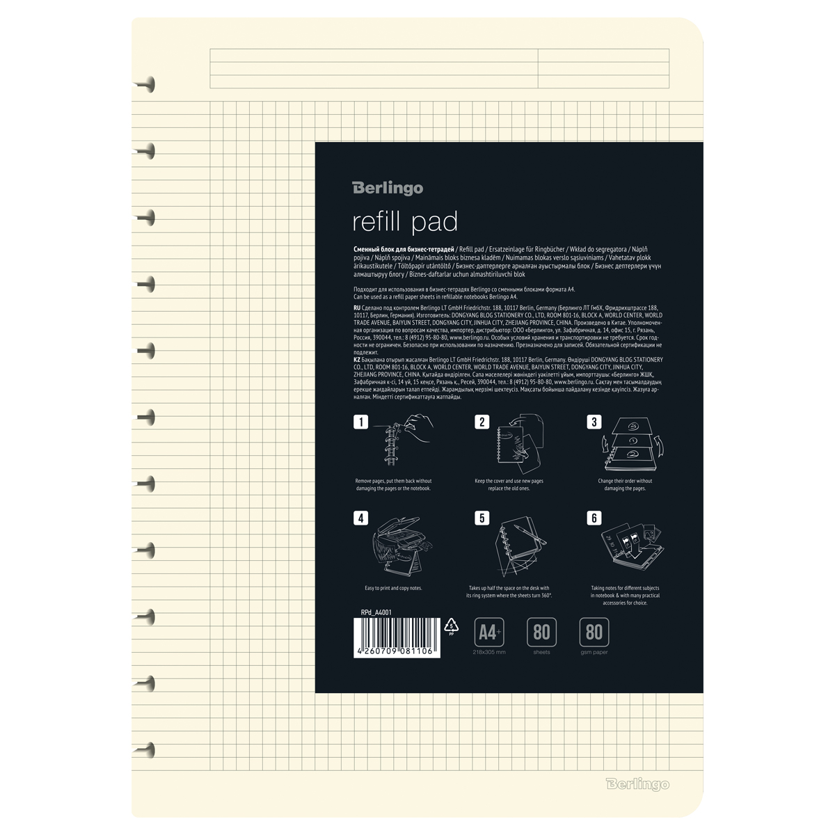 Сменный блок для бизнес-тетрадей Berlingo 80л., А4, белый