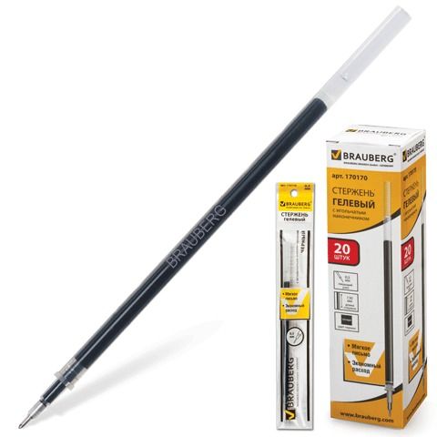 Стержень гелевый BRAUBERG 0,5мм, 130 мм, игольчатый пишущий, черн