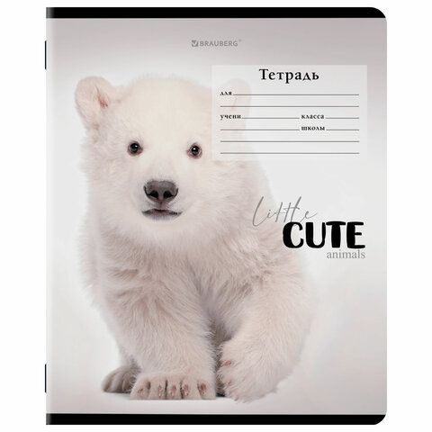 Тетрадь 12 л. BRAUBERG, клетка, обложка картон, CUTE ANIMALS, 107266