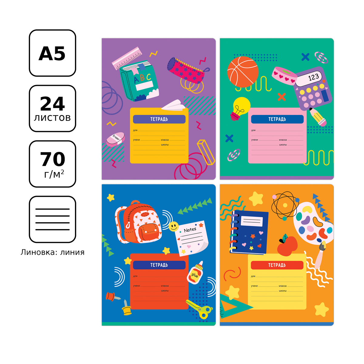 Тетрадь 24л., линия BG «Bright school», выб. лак, 70г/м2