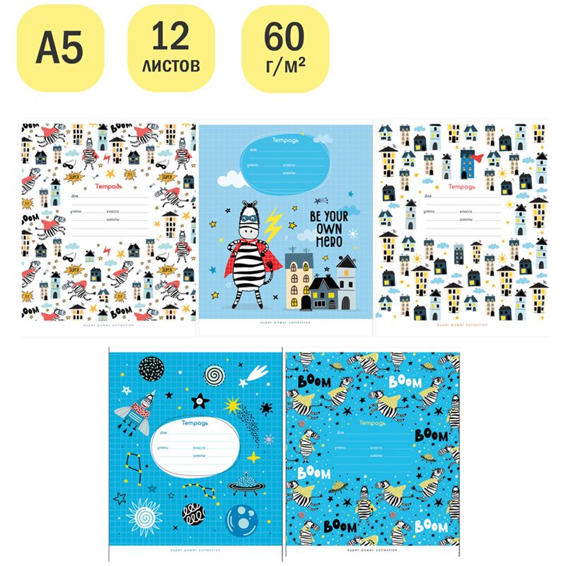 Тетрадь А5 12л., клетка ArtSpace «Узоры. Super power», эконом