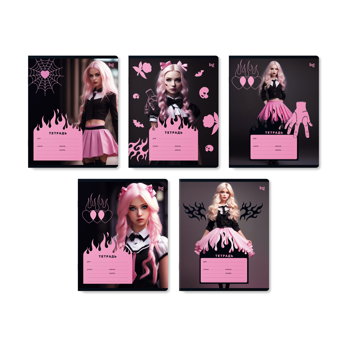 Тетрадь представлена в пяти вариантах дизайна. Подойдёт для школьников любого года обучения.