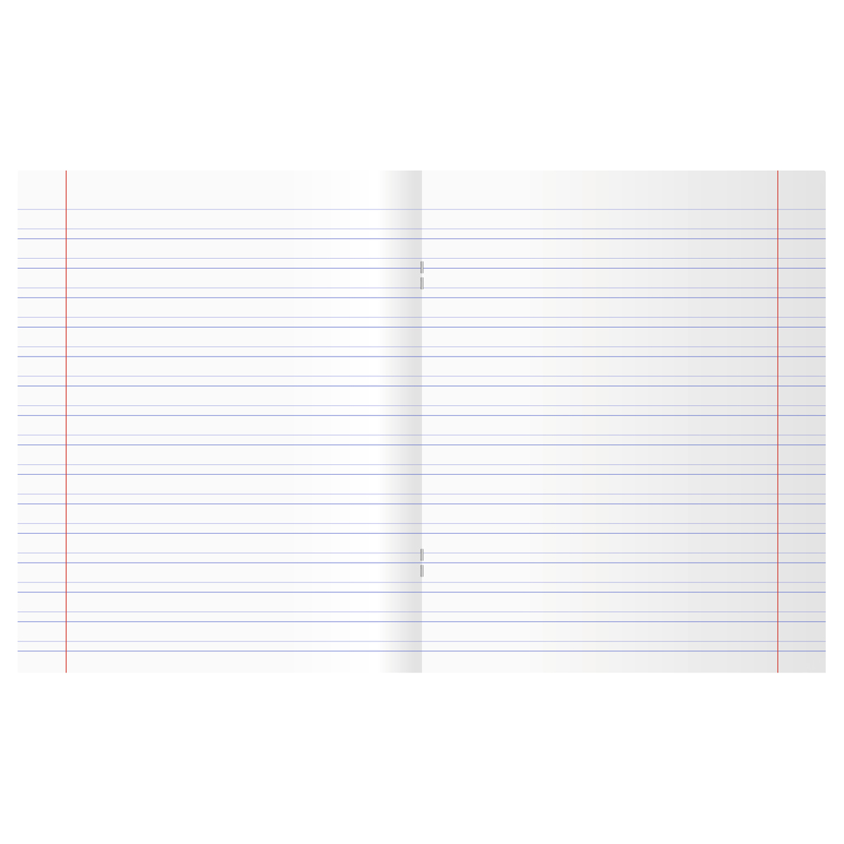 Внутренний блок – это офсетная бумага плотностью 60-65 г/м², белизна 100 %, линовка – узкая линия с полями, тип скрепления – скрепка. Обложка также изготовлена из офсета плотностью 80 г/м2.