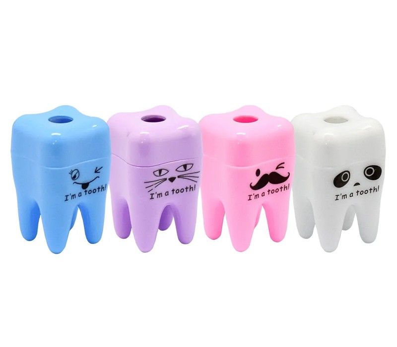 Точилка Lamark Зубик с контейнером, размер 45х28х28 мм. Поставляется в прозрачной пластиковой банкес крышкой по 22 штуки в ассортименте цветов.