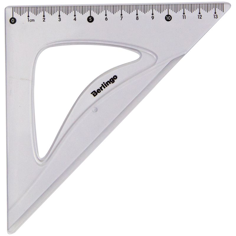 Треугольник пластиковый, 45°, 13 см, безопасные закругленные края, высококачественная градуировка с использованием УФ-чернил. Индивидуальная упаковка в пакет с европодвесом.