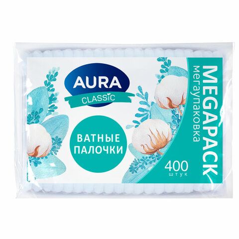 Ватные палочки КОМПЛЕКТ 400 шт., AURA CLASSIC, пакет, 14853