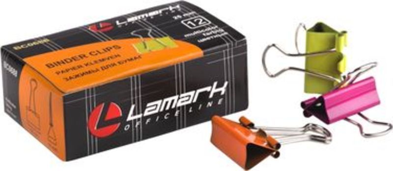 Зажим для бумаг 19 мм цветные НЕОН Lamark, 1ШТ