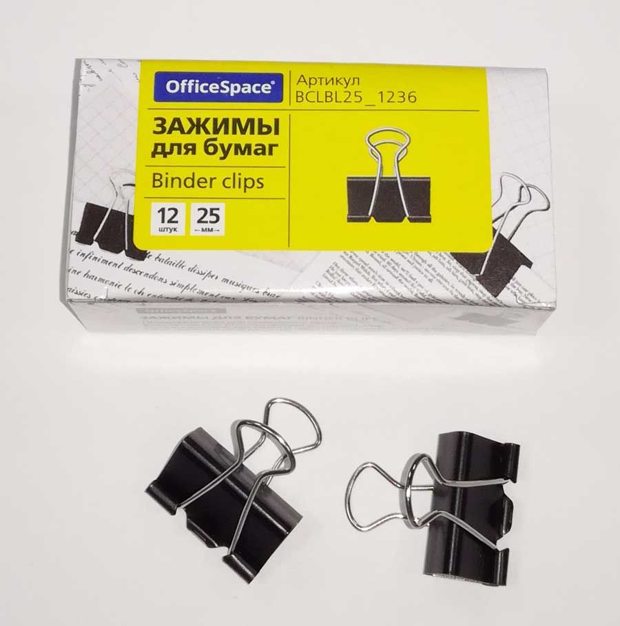 Зажим для бумаг 25 мм черный OfficeSpace, 1 ШТУКА