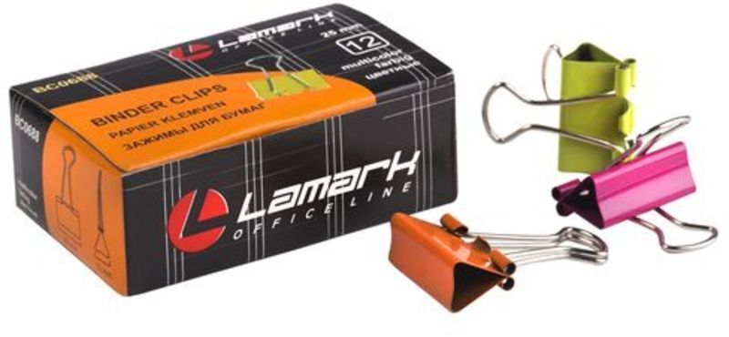Зажим для бумаг 25 мм цветные НЕОН Lamark, 1ШТ