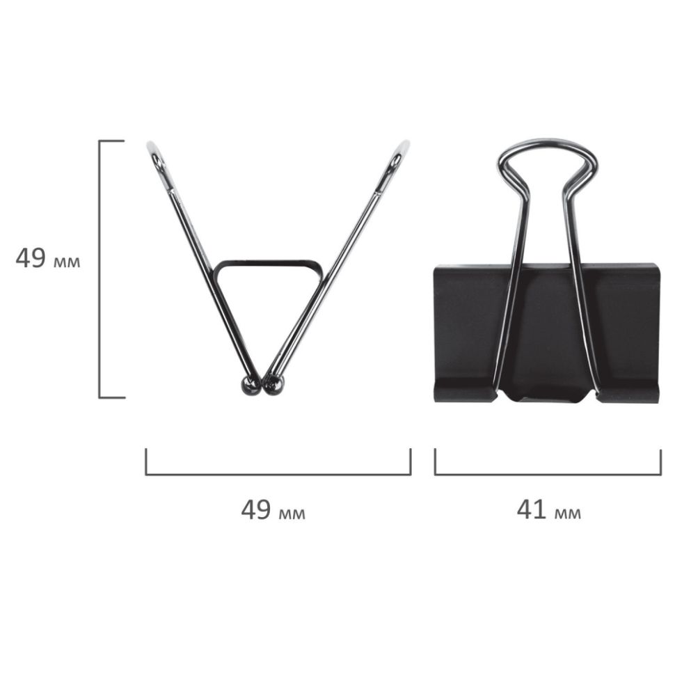 Зажимы предназначены для скрепления бумаг. Изготовлены из стали. Размер 24 мм. Упакованы по 12 шт. в картонной коробке.
