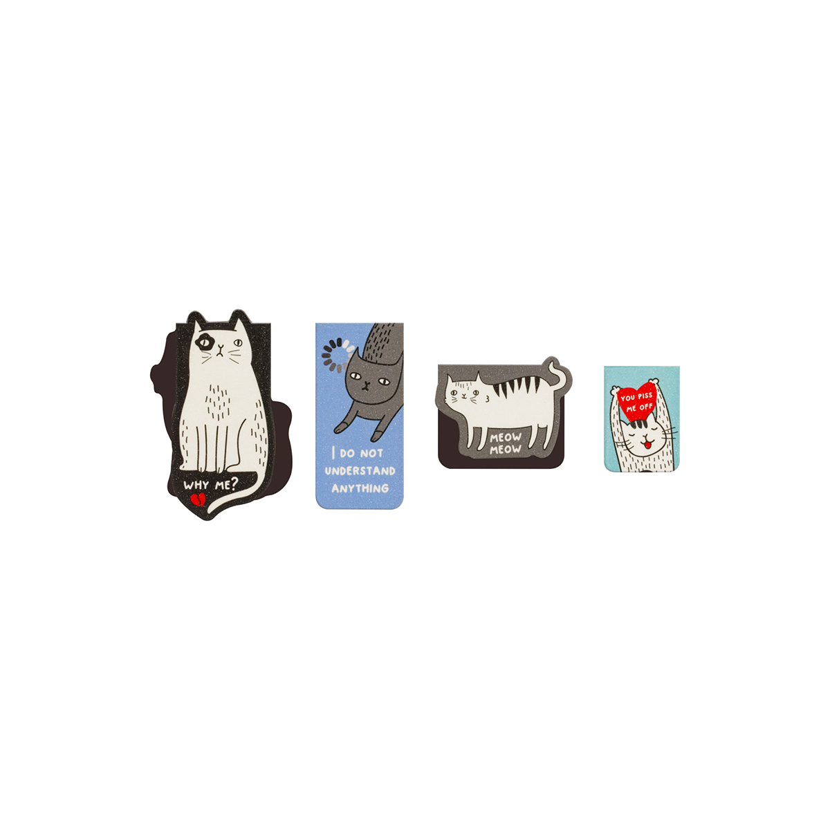 Магнитные закладки MESHU "Funny cat" помогут запомнить и быстро найти нужную страницу книги. В набор входят четыре аксессуара с разными дизайнами.