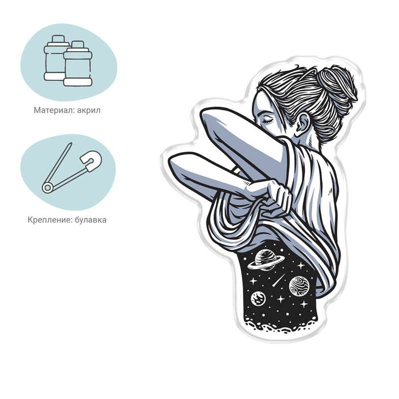 Значок из акрила MESHU Cosmogirl – оригинальный и модный аксессуар, который преобразит любую вещь. Размер – 2,5*3,5 см, крепление – булавка, которое позволяет значку надёжно держаться.