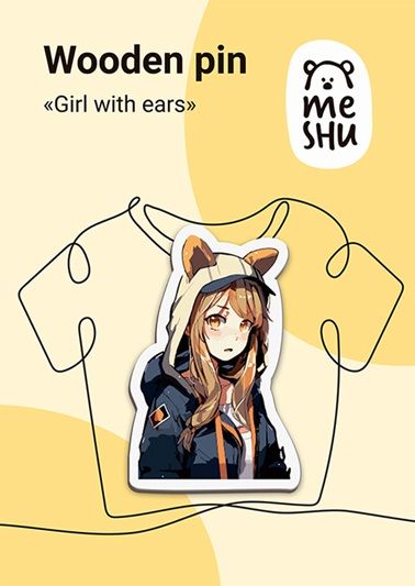 Деревянный значок MESHU Girls with ears – оригинальный и модный аксессуар, который преобразит любую вещь.