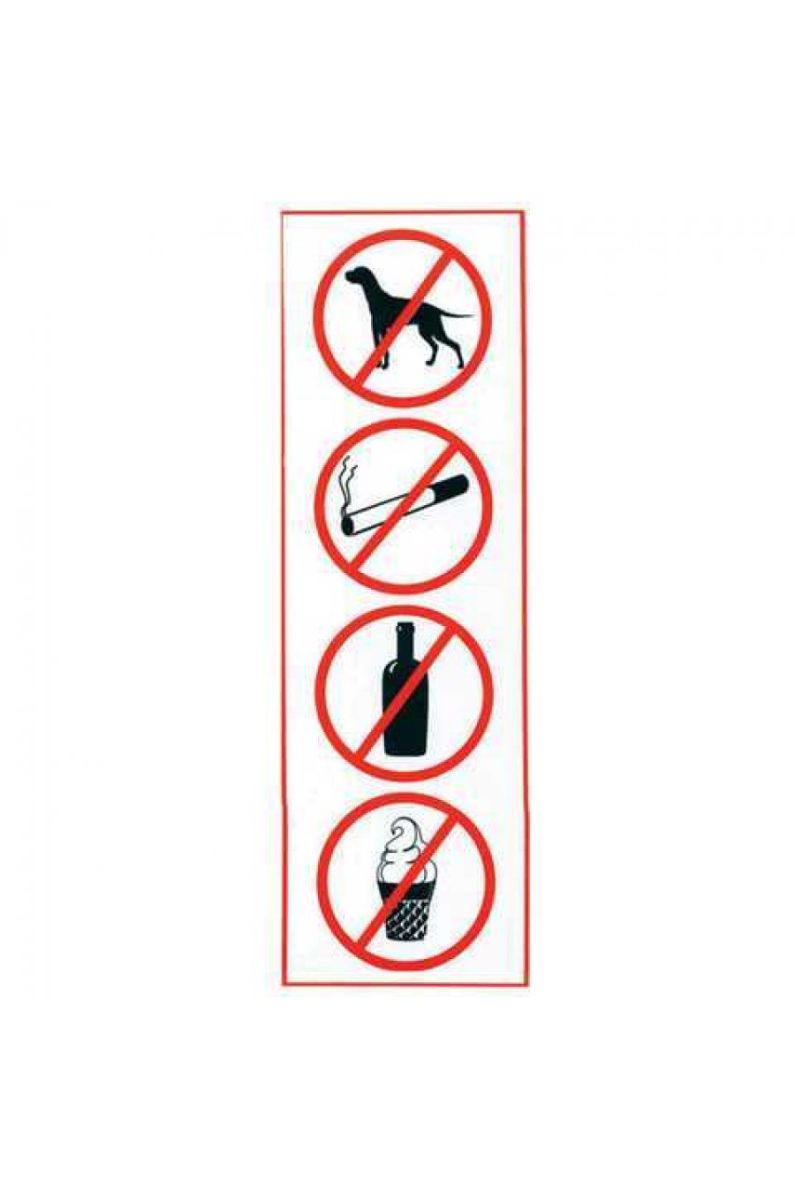Знак «Запрещ. курить,пить,есть,прохода с животн.», прямоуг. 300*100мм, самокл., верт